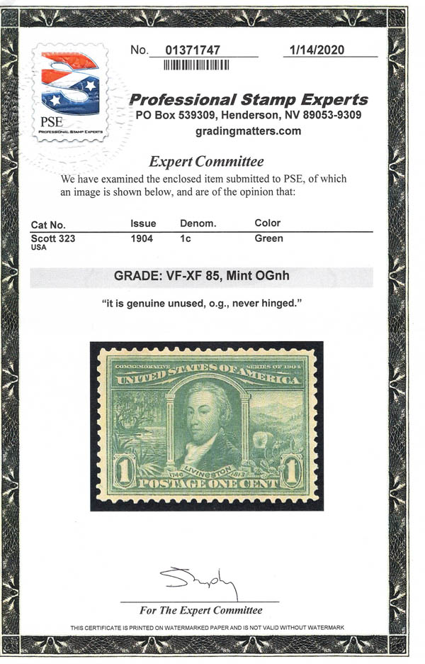 1904, 1¢ Louisiana Purchase (Scott 323), VF-XF 85. Scott $60. SMQ $75.