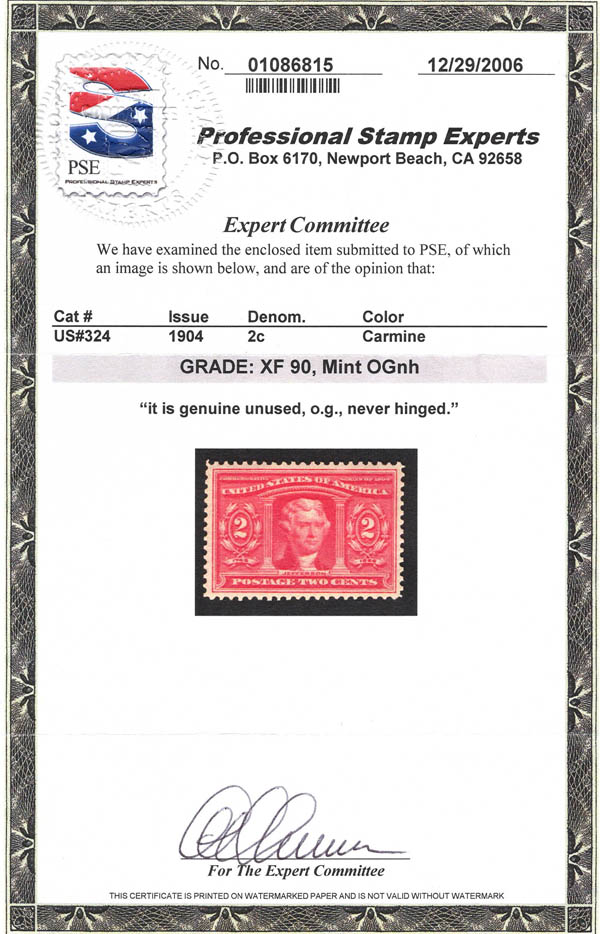 1904, 2¢ Louisiana Purchase (Scott 324), XF 90. Scott $60. SMQ $150.