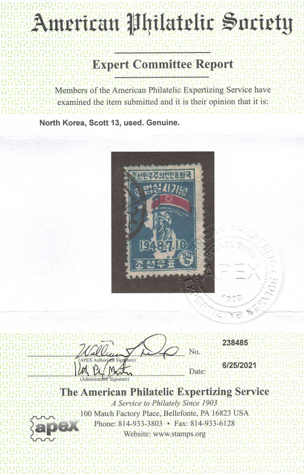 Korea (North), 1948, Adoption of Constitution, 50ch indigo & red (Scott 13), Feinst. Scott $800.