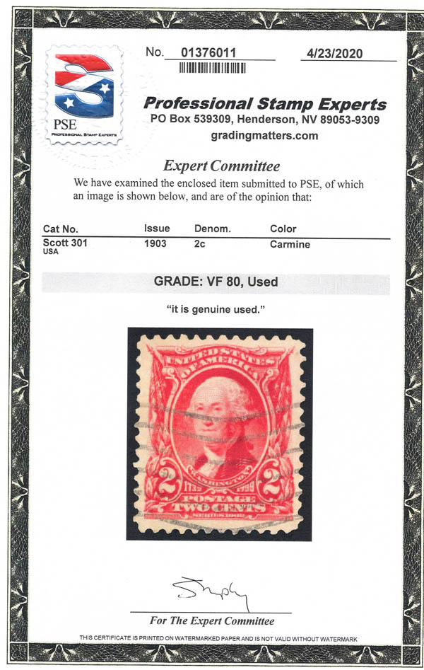 1903, 2¢ Washington (Scott 301), Pracht. SMQ $40.