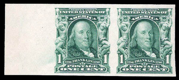 1906, 1¢ Franklin, imperf. (Scott 314), Pracht. Scott $60.