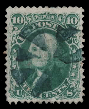 1867, 10¢ green, E. grill (Scott 89), neat circle-of-wedges cancel, almost Very Fine.