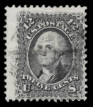 1867, 12¢ black, E. grill (Scott 90), bright and fresh, lightly canceled, Fine.