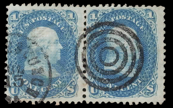 1867, 1¢ blue, F. grill (Scott 92), duplex cancel, Fine.
