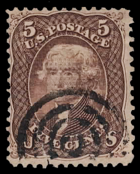 1867, 5¢ brown, F. grill (Scott 95), bold target cancel, Fine to Very Fine.