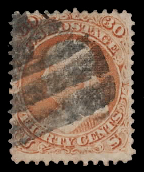 1867, 30¢ orange, F. grill (Scott 100), grid cancel, Fine.