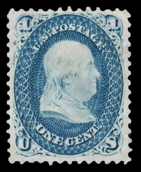 1861-66 (1875 Re-issue), 1¢ blue (Scott 102), fresh and beautifully well centered, unused without gum, Very Fine.