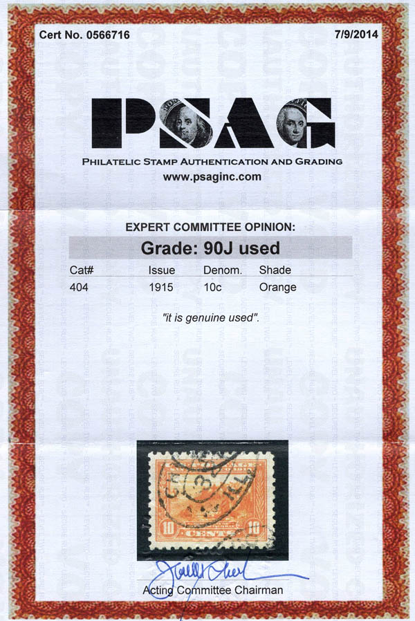 1915, 10¢ Panama-Pacific, perf. 10 (Scott 404), XF 90 J. Scott $70. SMQ $285.