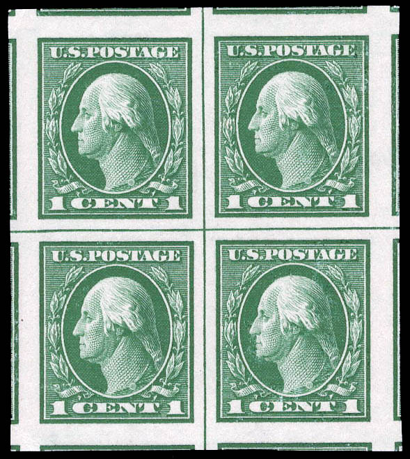 1912, 1¢ Washington, green, S.L. watermark, imperf. (Scott 408), Luxus. Scott $18.