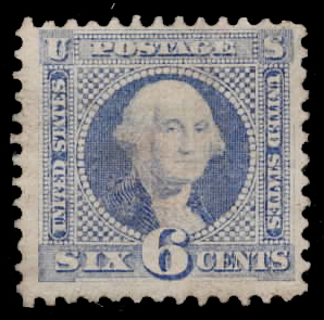 1869, 6¢ ultramarine (Scott 115), bright and fresh, unused without gum, Fine.
