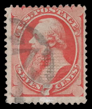 1871, 7¢ vermilion, H. grill (Scott 138), neat light New York Foreign Mail cancel, about Fine.