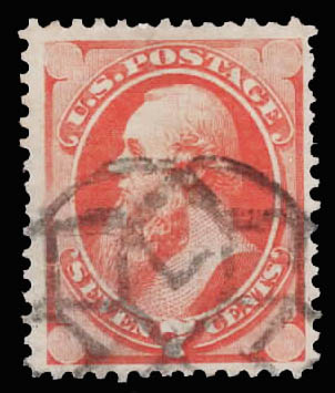 1873, 7¢ orange vermilion (Scott 160), neat New York Foreign Mail cancel, Fine to Very Fine.