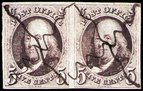 1847, 5¢ Franklin, brown (Scott 1 var.), sonst Pracht. Scott $500+.