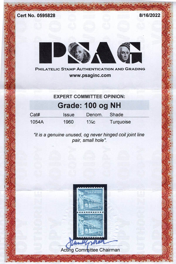 1960, 1¼¢ Santa Fe, vertical coil, small perf holes (Scott 1054A), Luxus. SMQ $225 as 98.
