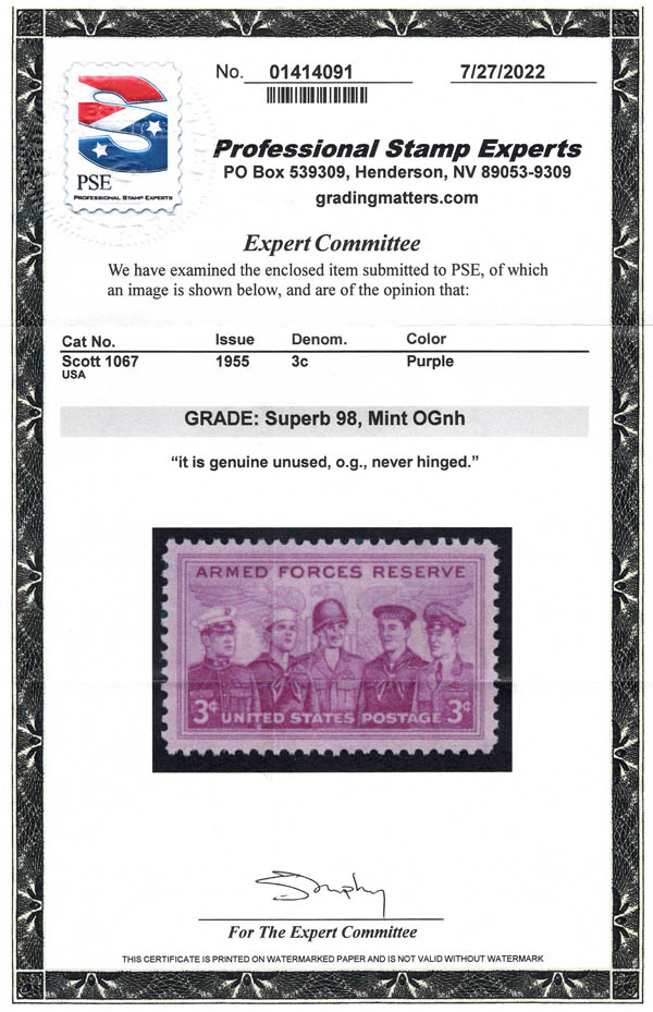1955, 3¢ Armed Forces Reserve (Scott 1067), Luxus. SMQ $50.