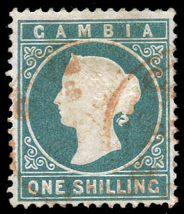 Gambia, 1880-81, Queen Victoria, Embossed, 1s green, Crown CC watermark upright (SG 19B. Scott 11), Pracht. SG £160 ($200). Scott $150.