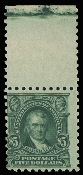 1917, $5 light green (Scott 480), excellent color, o.g., never hinged, Fine.