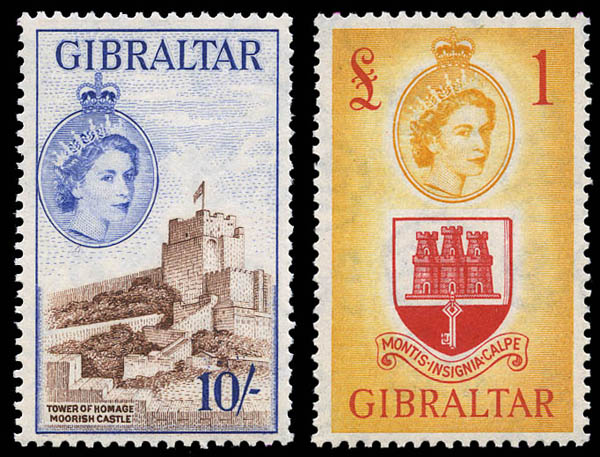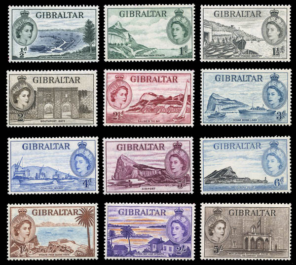 Gibraltar, 1953, Queen Elizabeth II Pictorials, ½d to £1 complete (SG 145/158. Scott 132-145), set of 14, Feinst. SG £190 ($240). Scott $204.