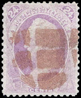 1870, 24¢ Scott, purple, without grill, N.B.N.C. printing (Scott 153), Pracht. Scott $240.