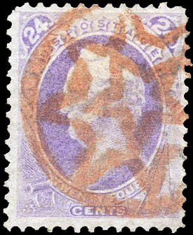 1870, 24¢ Scott, purple, without grill, N.B.N.C. printing (Scott 153), Fein. Scott $240.