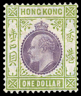 Hong Kong, 1904, King Edward VII, $1 purple & sage green, ordinary paper, Multiple Crown CA watermark (SG 86. Scott 103), Pracht. SG £200 ($260). Scott $190.