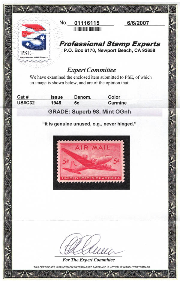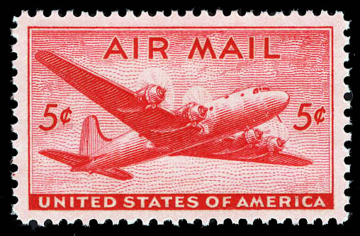 Airmail, 1946, 5¢ DC-4 Skymaster (Scott C32), Luxus. SMQ $125.