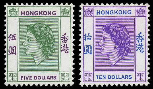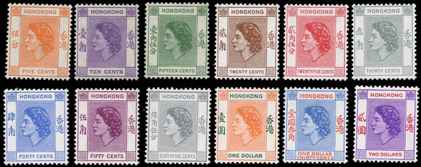 Hong Kong, 1954-62, Queen Elizabeth II (Wilding portrait), 5¢ to $10 complete (SG 178/191. Scott 185-198), set of 14, Pracht. SG £250 ($320). Scott $230.
