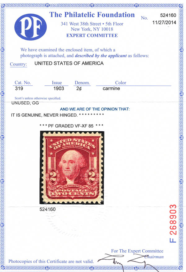 1903, 2¢ Washington & Shield, type I, carmine (Scott 319), VF-XF 85. SMQ $90.