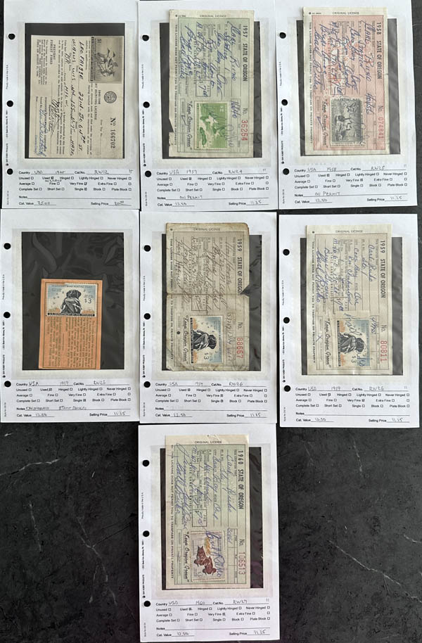 Federal Duck Stamps, 1945-60, a group used on permits, Fein. Scott $100.