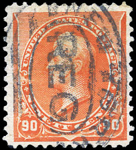 1890, 90¢ Perry, orange (Scott 229), Feinst. Scott $140.