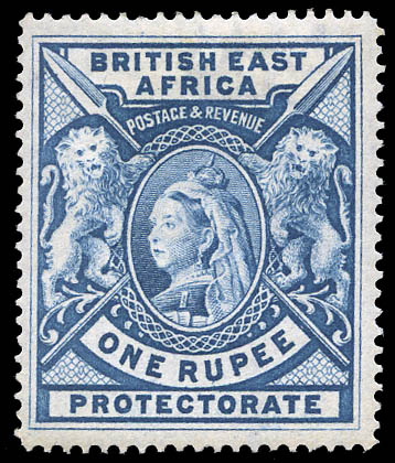 Kenya, Uganda & Tanganyika: British East Africa, 1901, Queen Victoria, 1r dull blue (SG 92a. Scott 102a), Feinst. SG £120 ($150). Scott $120.