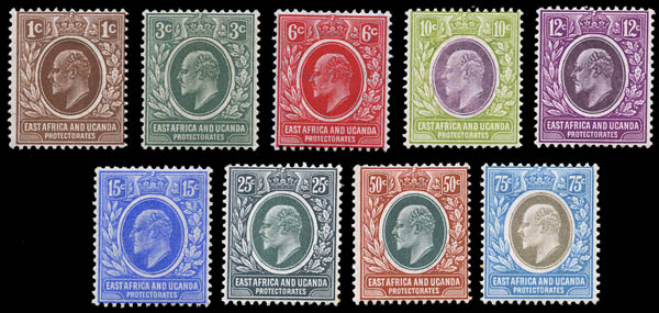Kenya, Uganda & Tanganyika: East Africa & Uganda, 1907-08, King Edward VII, 1¢ to 75¢ complete (SG 34/42. Scott 31-39), set of 9, Feinst. SG £120 ($150). Scott $136.