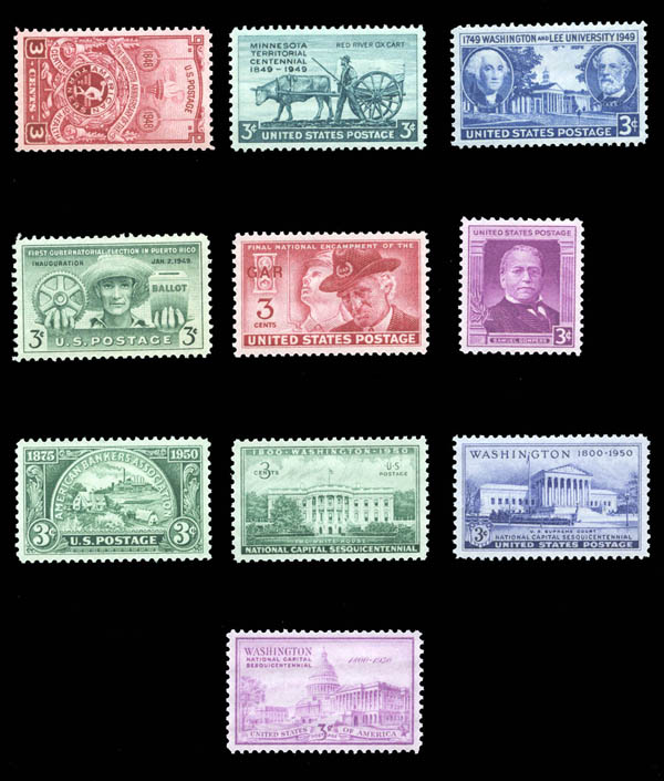 1948, 3¢ American Turners, and 9 other high quality commemoratives (Scott 979), extremely fine to superb.