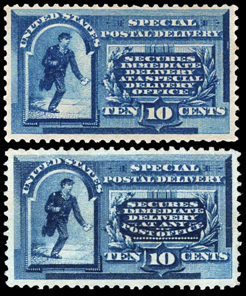 Special Delivery, 1885, 10¢ blue and 1888, 10¢ blue (Scott E1-E2), Feinst. Scott $1,050.
