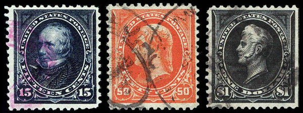 1895, 15¢ Clay, 50¢ Jefferson and $1 Perry, type I, D.L. watermark (Scott 274-276), a lovely group of 3 stamps, Feinst. Scott $158.