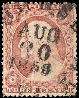 1857, 3¢ Washington, rose, type II (Scott 25A), Feinst. Scott $1,050.