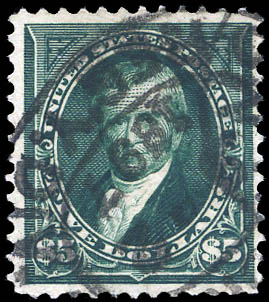 1895, $5 Marshall, dark green, D.L. watermark (Scott 278), Fein. Scott $600.