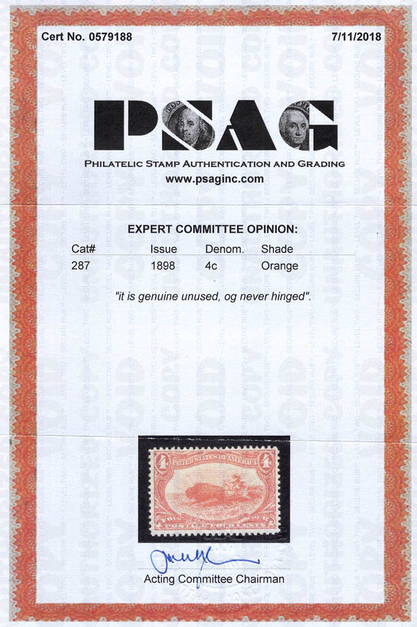 1898, 4¢ Trans-Miss. (Scott 287), Fein. Scott $330.