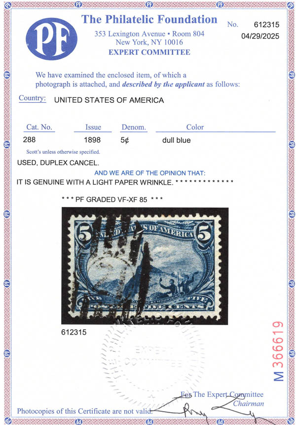 1898, 5¢ Trans-Miss. (Scott 288), VF-XF 85. SMQ $50.