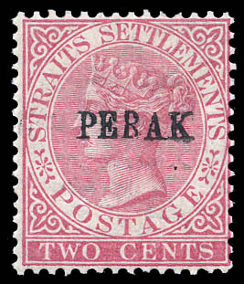 Malay States: Perak, 1886, Queen Victoria, 2¢ pale rose (SG 21. Scott 11), Fein. SG £200 ($260). Scott $225.