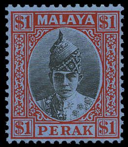 Malay States: Perak, 1940, Sultan Iskandar, $1 black & red on blue (SG 119. Scott 96), Fein. SG £150 ($190). Scott $150.