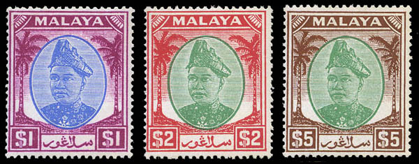 Malay States: Selangor, 1949, Sultan Hisam-ud-din Alam Shah, 1¢ to $5 complete (SG 90-110. Scott 80-100), set of 21, Feinst. SG £120 ($150). Scott $119.