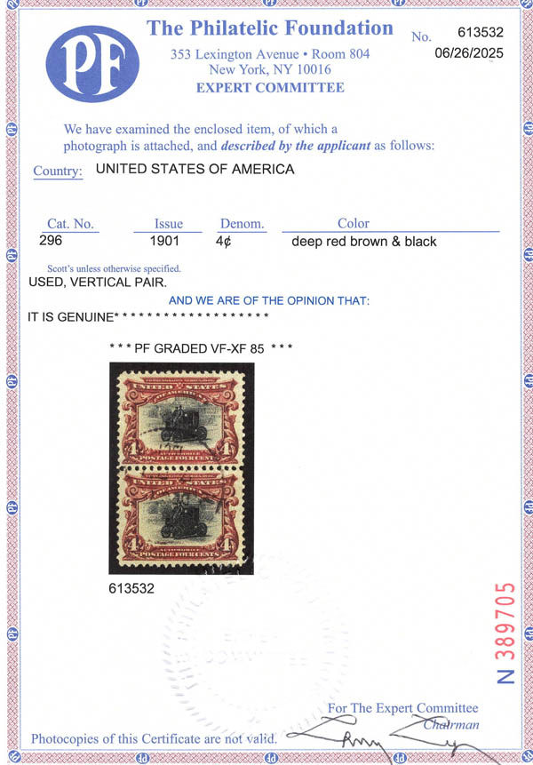 1901, 4¢ Pan-American (Scott 296), VF-XF 85. Scott $36. SMQ $50.