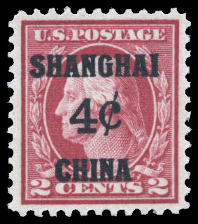 Los 365![]() ![]() Offices in China, 1919, 4¢ on 2¢ rose (Scott K2), extremely fine to superb, very close to the "Top of the POP" as only 3 others are known grading higher - this is truly one for the most demanding collector! Scott $68. SMQ $450. Estimate $350 - 500. |