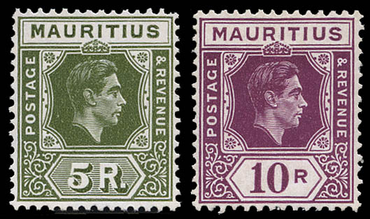 Mauritius, 1938-49, King George VI, 2¢ to 10r complete (SG 252/263a. Scott 211-222), set of 12, Feinst. SG £130 ($170). Scott $127.