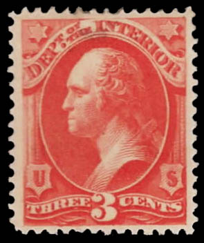 Interior Dept., 1873, 3¢ vermilion (Scott O17), Pracht. Scott $80.