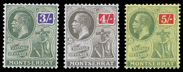 Montserrat, 1922-29, King George V, ¼d to 5s complete, Multiple Script CA watermark (SG 63/83. Scott 54-74), set of 21, Feinst. SG £110 ($140). Scott $130.