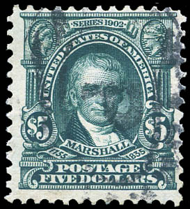 1903, $5 Marshall, dark green (Scott 313), Fein. Scott $750.