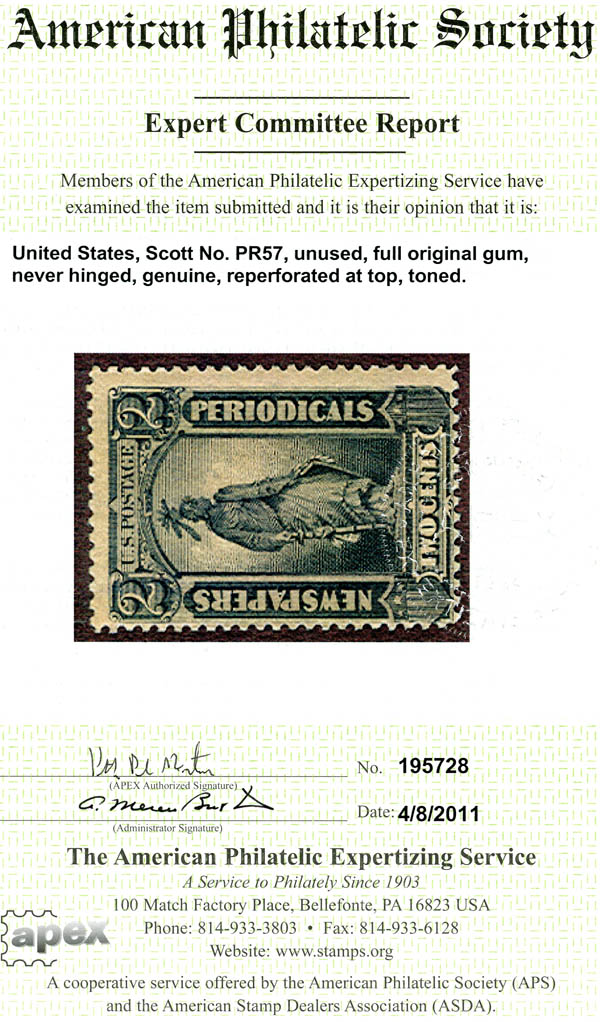 Newspaper, 1879, 2¢ black, A.B.N.C. printing (Scott PR57), Fein im Aussehen. Scott $75 as hinged.