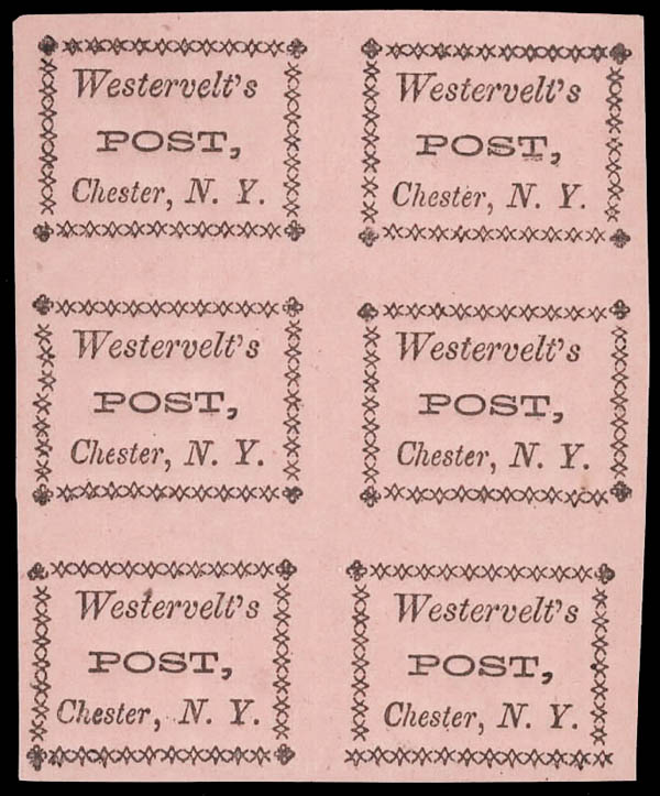 Westervelt's Post, 1863 (1¢) black on buff (Scott 144L1), very fine to extremely fine. Scott $675.